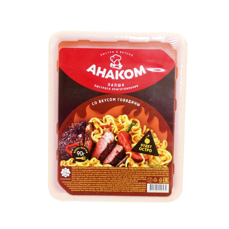 Лапша Анаком говядина острая 90г лоток В наличии 26026 53.42 RUB Параметры Бренд: АнакомСтрана: РоссияУпаковка: СтандартГоден до: 07.10.26