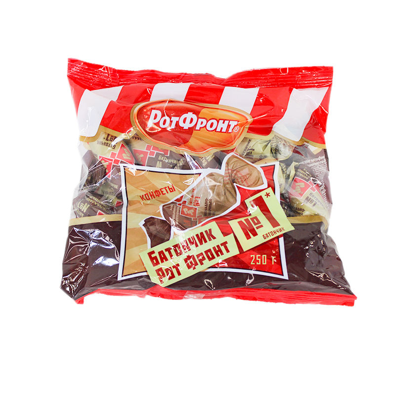 Конфеты Батончик Рот Фронт шоколадно-сливочный 250г Нет в наличии 17368 108.56 RUB Параметры Бренд: Рот ФронтСтрана: РоссияУпаковка: ПакетГоден до: 07.06.24