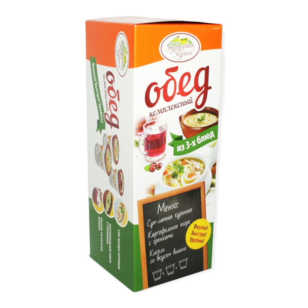 Комплексный обед №1:суп-лапша куриная, картофельное пюре с гренкам, кисель с вишней 93г Нет в наличии 20315 46.00 RUB Параметры Бренд: Кубанская КухняСтрана: РоссияУпаковка: СтандартГоден до: 19.06.23