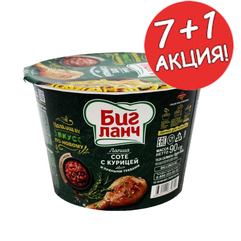 Биг Ланч 90г. СОТЕ с куриц.и прян.травами АКЦИЯ 7+1 В наличии 26081 59.35 RUB Параметры Бренд: Биг ЛанчСтрана: РоссияУпаковка: СтандартГоден до: 06.11.26