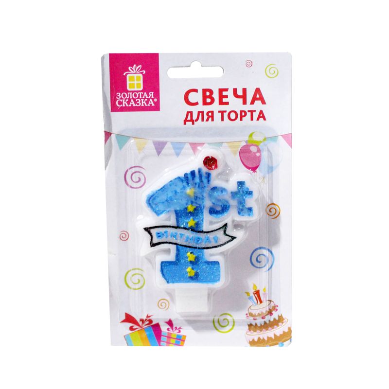 Свеча -цифра для торта 1 годик голубая 9,5см 591443