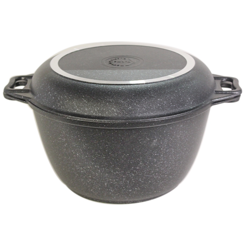 Казан с крышкой-сковородой 4л с антипригарным покрытием (темный мрамор) Кукмара